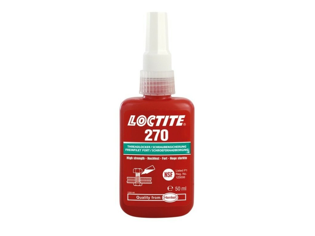 Loctite 270 je určen k trvalému zajištění a utěsnění závitových spojů. Vytvrzuje bez přístupu vzduchu ve spáře mezi kovovými částmi, čímž zabraňuje jejich uvolnění nebo prosakování, a to i při vibracích či dynamickém zatížení. Ideálně se hodí pro vysoce namáhané spoje, například svorníky v motorových blocích, matice na čerpadlech a další závity, kde je vyžadována maximální pevnost.