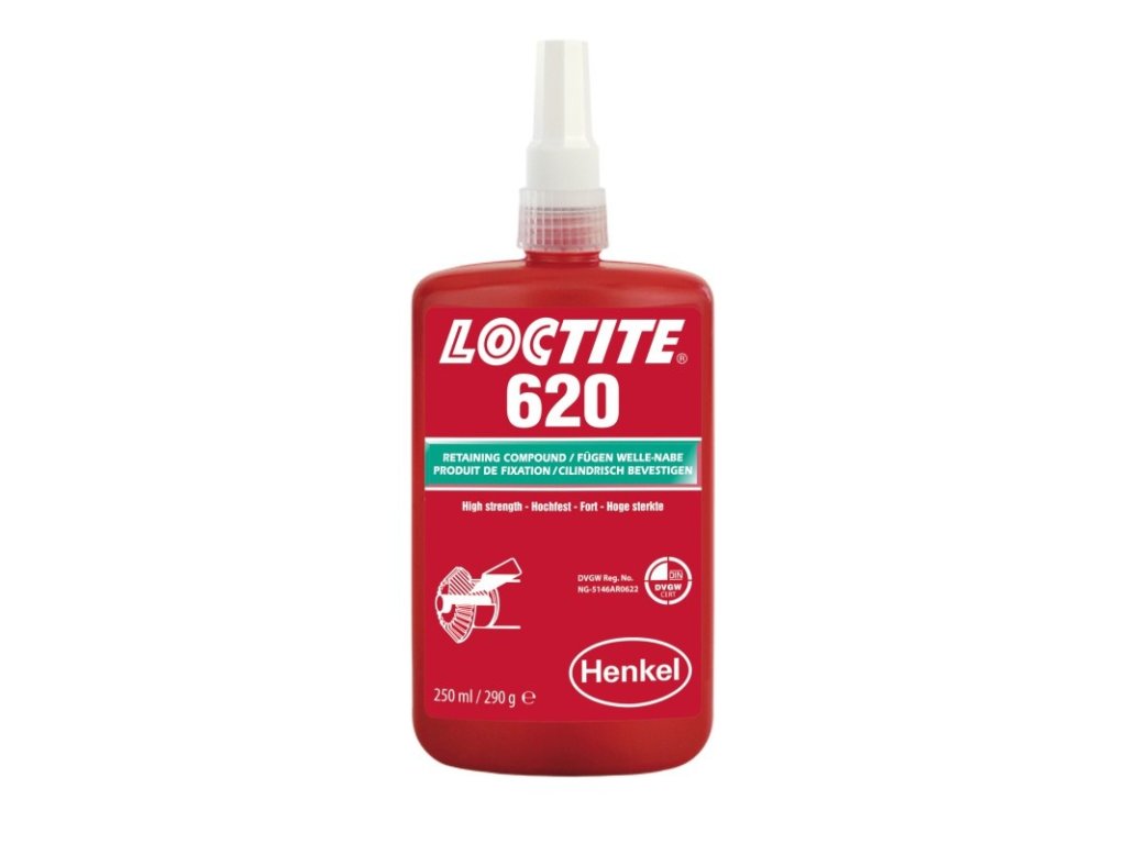 LOCTITE 620 je určen k upevňování válcových součástí, kde je požadována vysoká pevnost a odolnost vůči teplotám. Vytvrzuje bez přístupu vzduchu ve spáře mezi kovovými povrchy, čímž efektivně brání uvolnění nebo úniku způsobenému vibracemi či dynamickým namáháním.