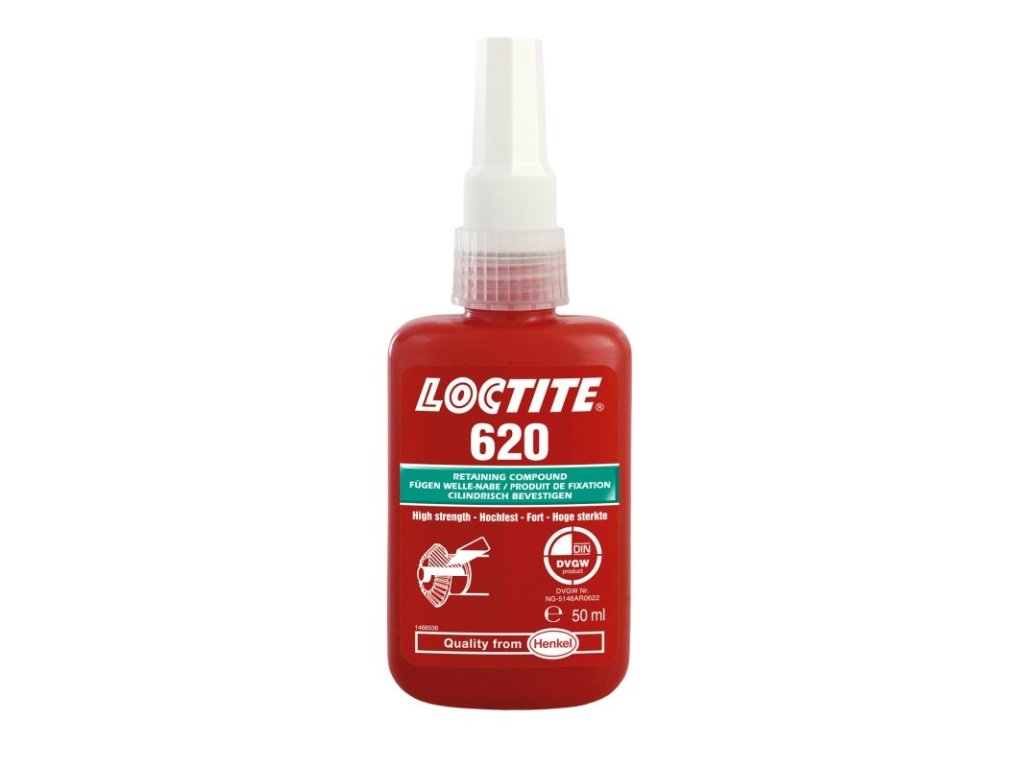 LOCTITE 620 je určen k upevňování válcových součástí, kde je požadována vysoká pevnost a odolnost vůči teplotám. Vytvrzuje bez přístupu vzduchu ve spáře mezi kovovými povrchy, čímž efektivně brání uvolnění nebo úniku způsobenému vibracemi či dynamickým namáháním