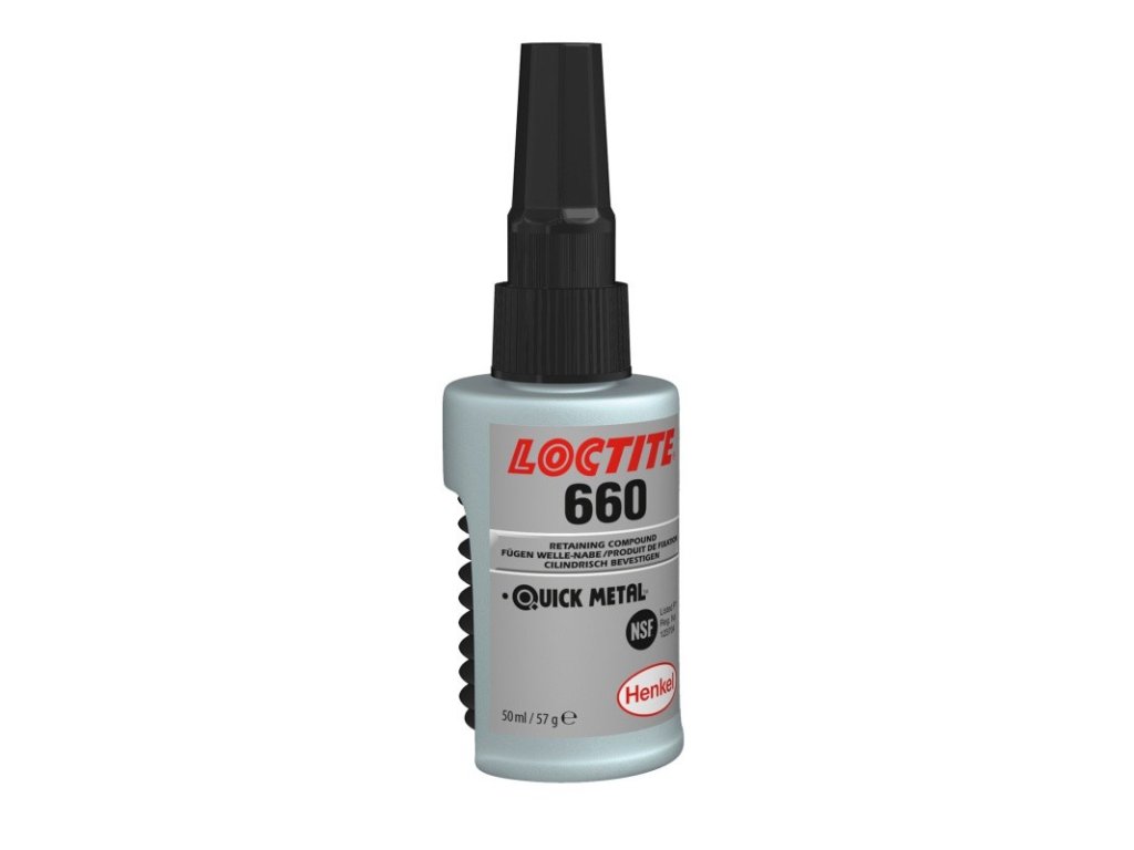 Loctite 660 je speciální anaerobní přípravek určený k upevňování válcových součástí, především tam, kde je mezi díly větší vůle – až do 0,50 mm. Vytvrzuje bez přístupu vzduchu ve spáře mezi kovovými povrchy a spolehlivě brání uvolnění nebo prosakování, a to i při působení vibrací a dynamického zatížení.